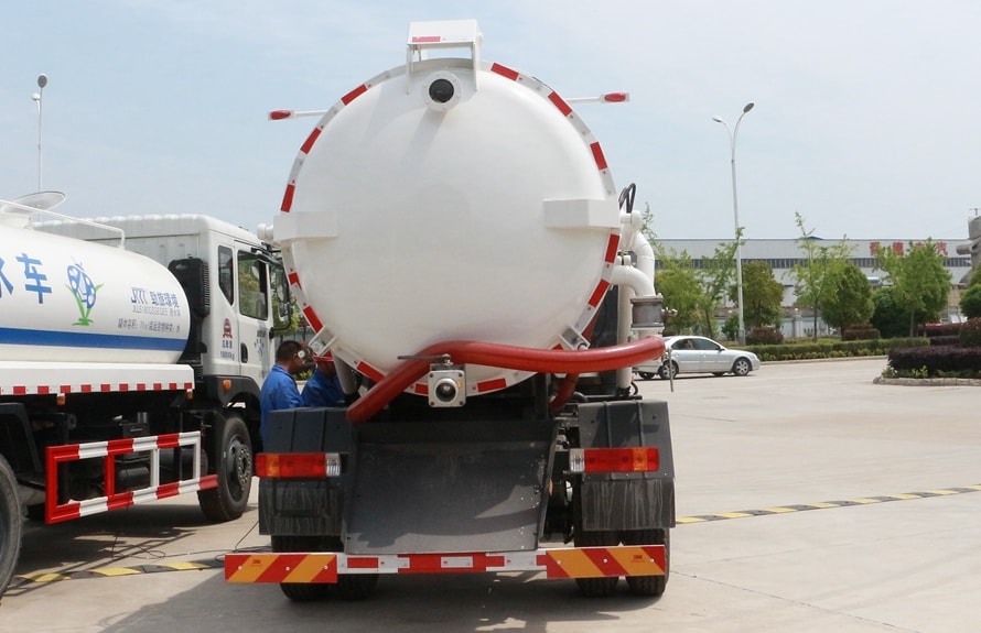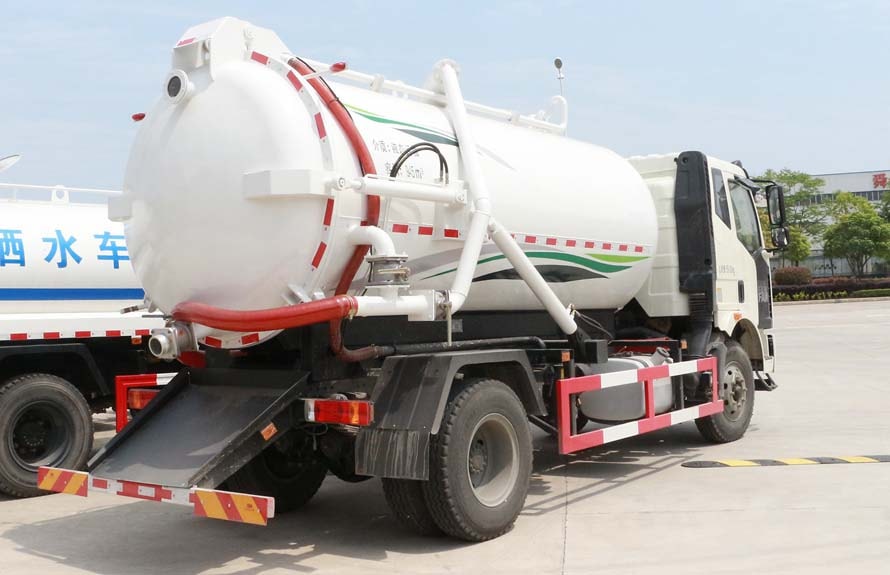 标准配置 | 吸污车专用部分由压力罐体(采用国标6mm厚碳钢板、可选择使用不锈钢罐 、衬塑罐)、真空吸污泵、取力器、传动轴、水气分离器、油气分离器、多路换向阀、放污阀、视污窗、真空压力表、管网系统、液压系统、洗手装置等组成,随车配置大功率真空吸污泵和优质液压系统,罐体封头一次压铸成型、罐体可液压后开、双顶液压自卸。罐内污物可通过后盖直接倾倒,具有真空度高(比吸粪车的吸力更大)、吨位大、效率高、用途更广泛的特点。 | ||