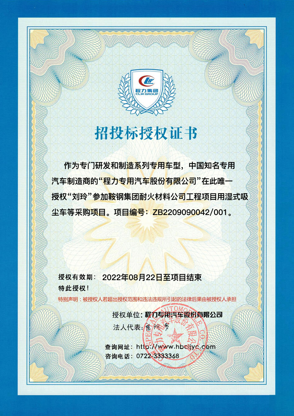 鞍钢集团耐火材料公司工程项目用湿式吸尘车等